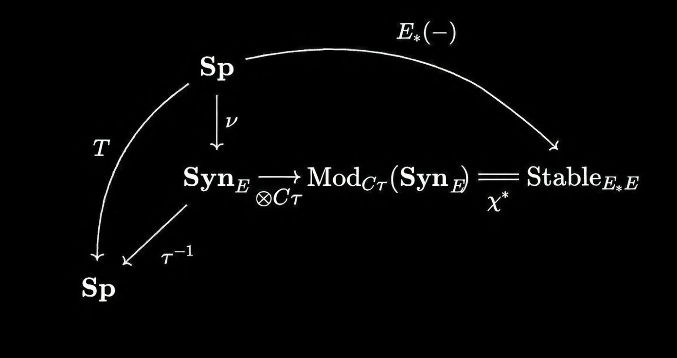 From work of Barthel, Heard, and Valenzuela, the lax monoidal functor $$ E_{\ast} : \mathrm{Sp}^{fp}_E \longrightarrow \mathbf{Comod}^{fp}_{E_{\ast}E} $$ induces an equivalence $$ \chi^{\ast} : \mathrm{Mod}_{C\tau}(\mathrm{Syn}_E) \simeq \mathrm{Stable}_{E_{\ast}E\text{-}\mathbf{Comod}}, $$ provided that $E$ has enough projectives (in particular, for Landweber-exact $E$).Thus we get the following diagram connecting different categories we are interested in: